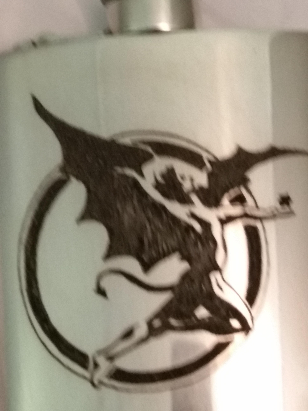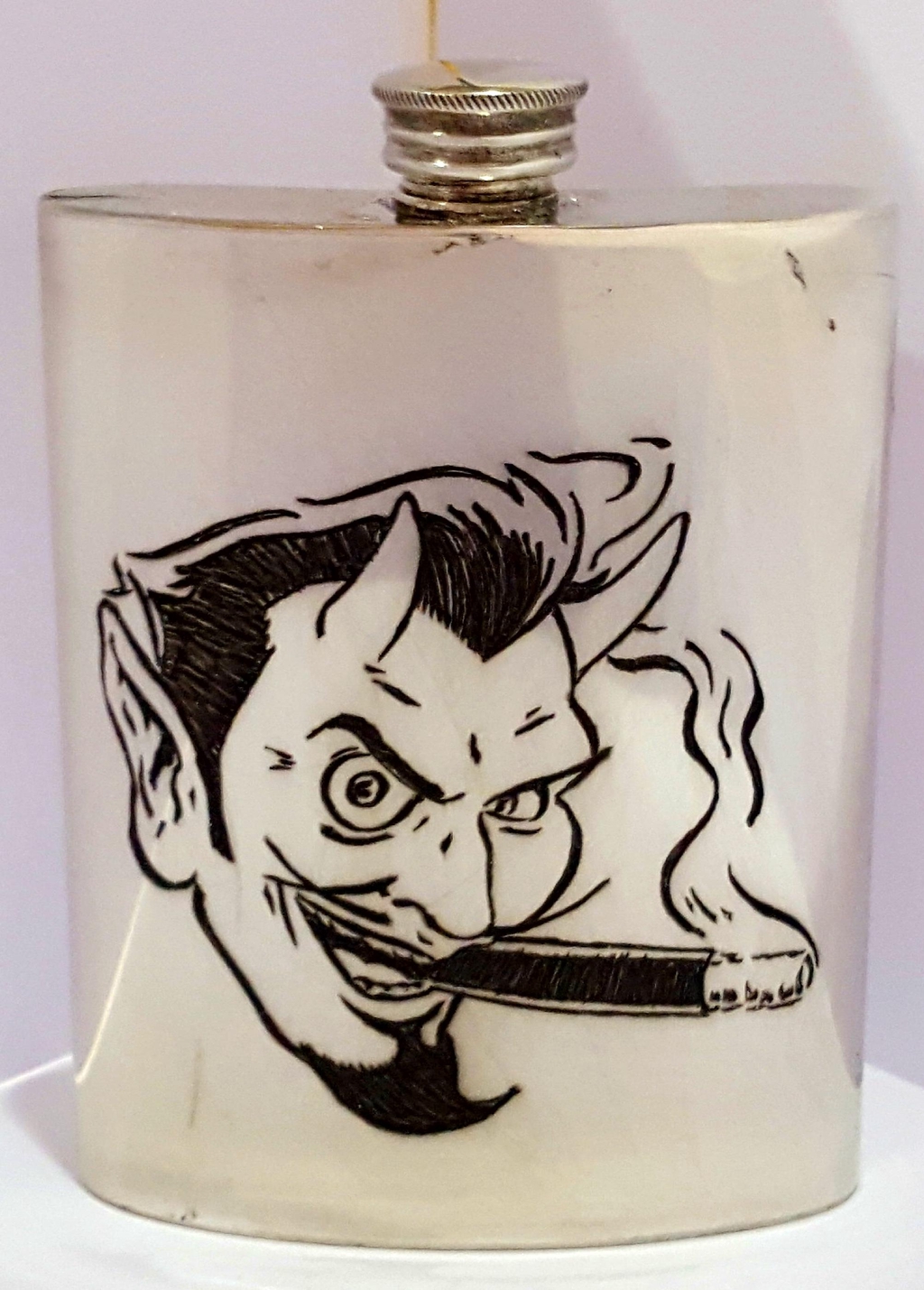 The smoking devil was also engraved on a flask at a beer festival (Manchester I think). The customer sent me the artwork to my phone and I was able to produce this in about 2 hours.