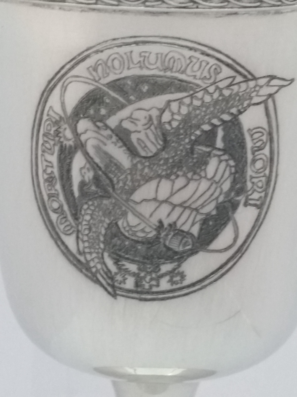 The next one is another Discworld logo for the same customer as the previous one, this was engraved onto a pewter Goblet.
