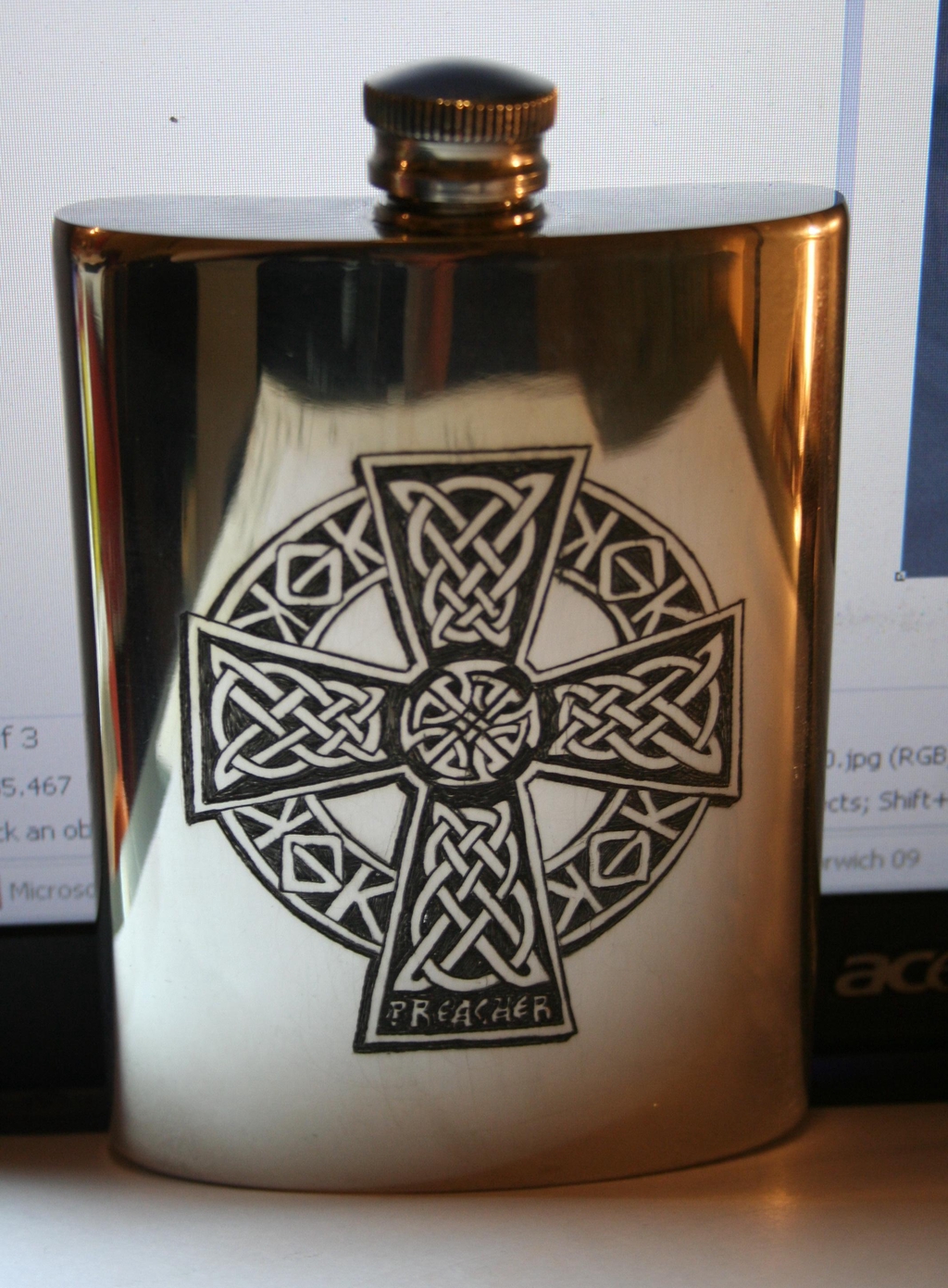 The Celtic cross was a design i produced for a friend and colleague at Norwich, this design was engraved on his flask and tankard.