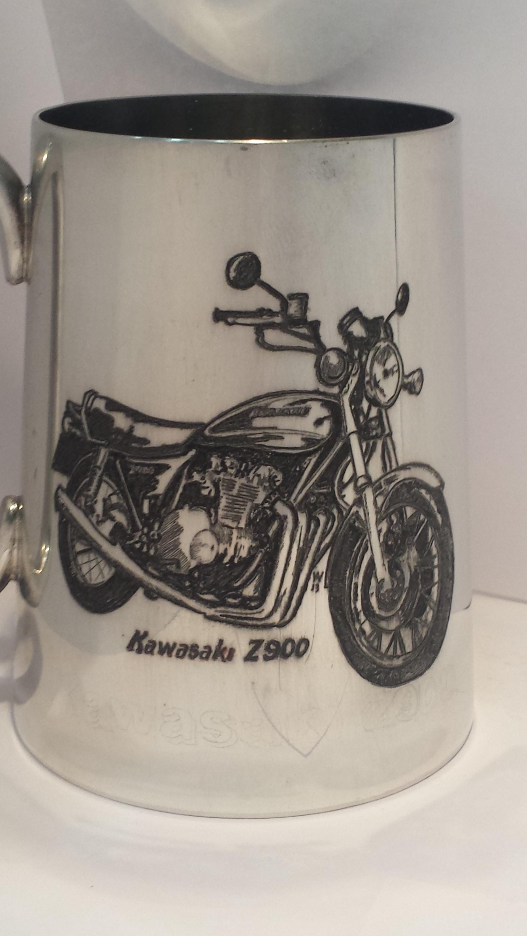The engraved motorbike is actually an "imperial" peter tankard that I engraved for my sister-in-law to give my younger brother for his Birthday.