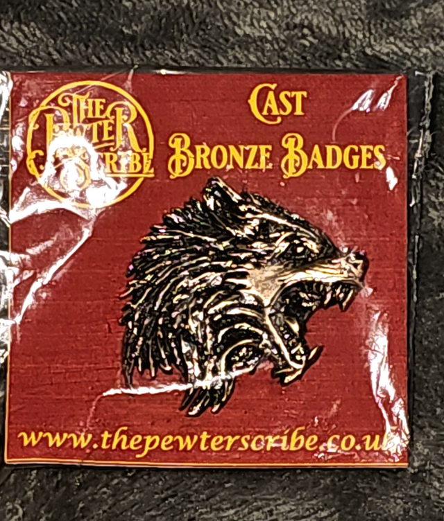 Add a touch of wilderness to your style with this stunning Bronze Wolf Lapel Pin, expertly crafted by the Pewter Scribe. This eye-catching animal-inspired accessory features intricate detailing that captures the fierce and majestic spirit of the wolf, making it the perfect pin badge for nature lovers and fashion enthusiasts alike. Lightweight yet durable, this versatile lapel pin can be worn on jackets, bags, hats, or scarves, adding a unique and elegant accent to any outfit. Whether for everyday wear or as a thoughtful gift, this bronze or pewter wolf pin combines artistry and symbolism, making it a must-have addition to your jewellery collection.The Snarling Wolf pin badge is 30mm high and weighs 9 grams in bronze or 7 grams in pewter.